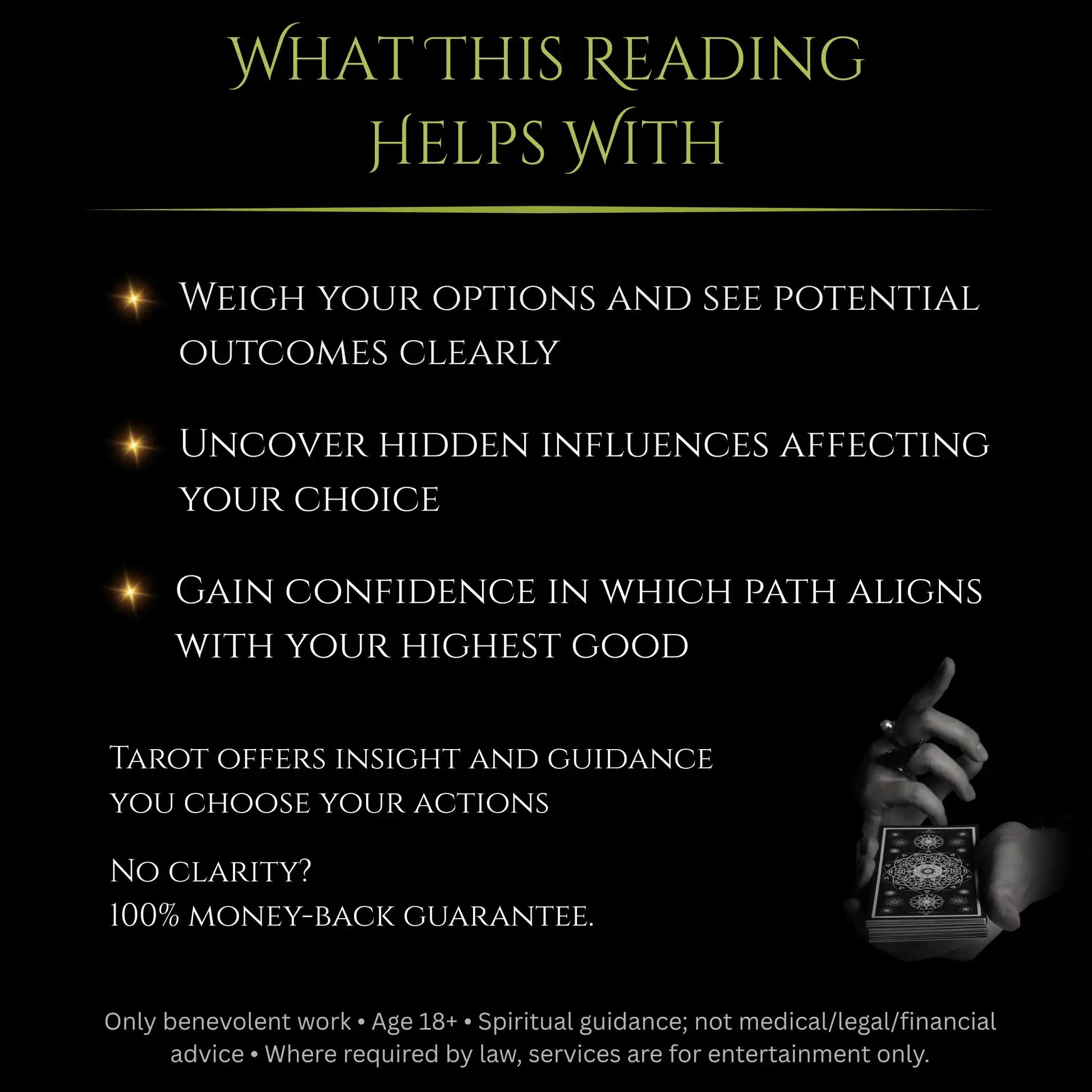 This reading won’t take away your free will or make the choice for you. Instead, it gives you a clear, honest view of each path so you can decide from a place of understanding rather than fear or guesswork.