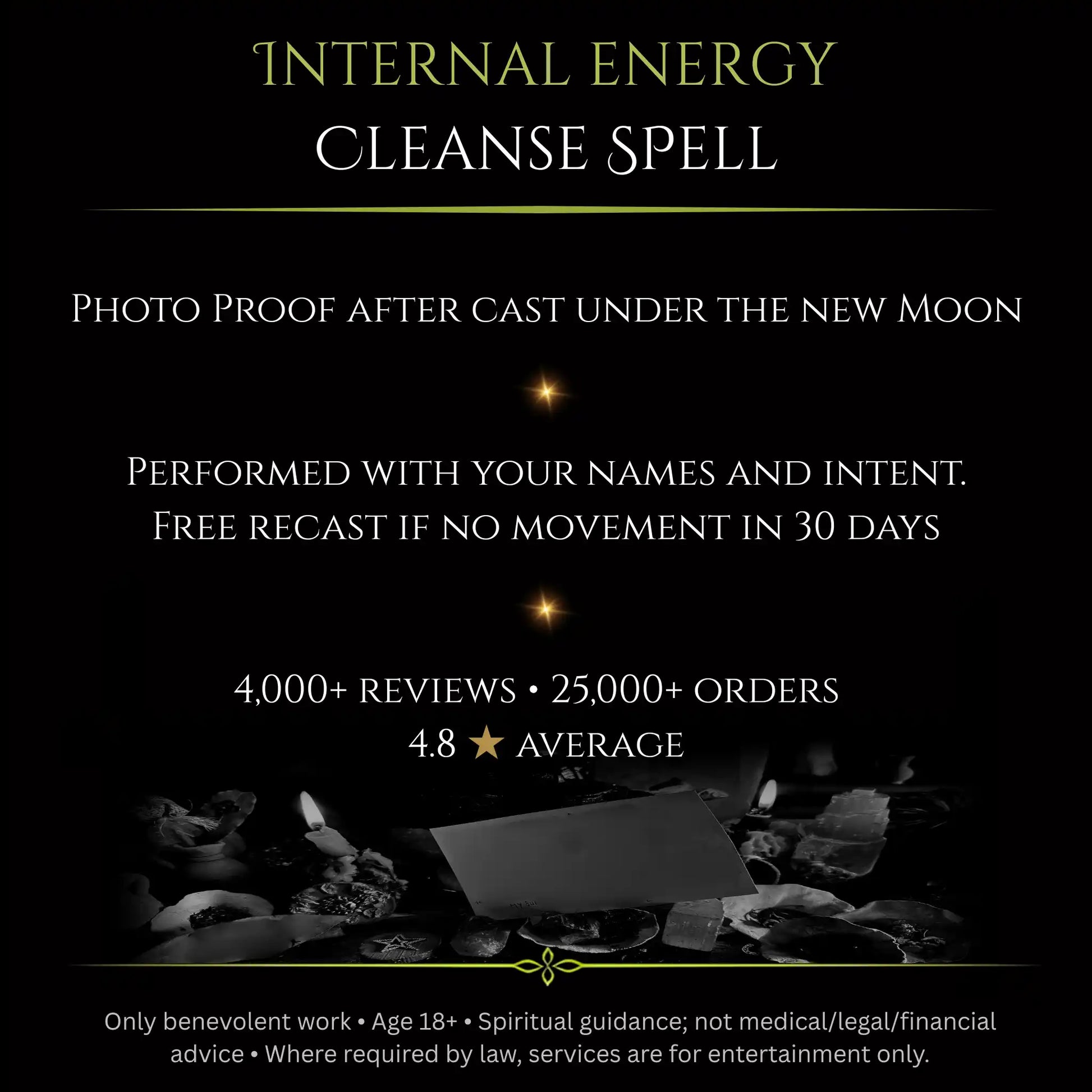 Rather than forcing big external changes, this spell works from the inside out. It’s like a deep energetic reset – purifying your field so you’re no longer carrying what doesn’t belong to you, and creating space for more peace, positivity, and aligned opportunities to enter your life.