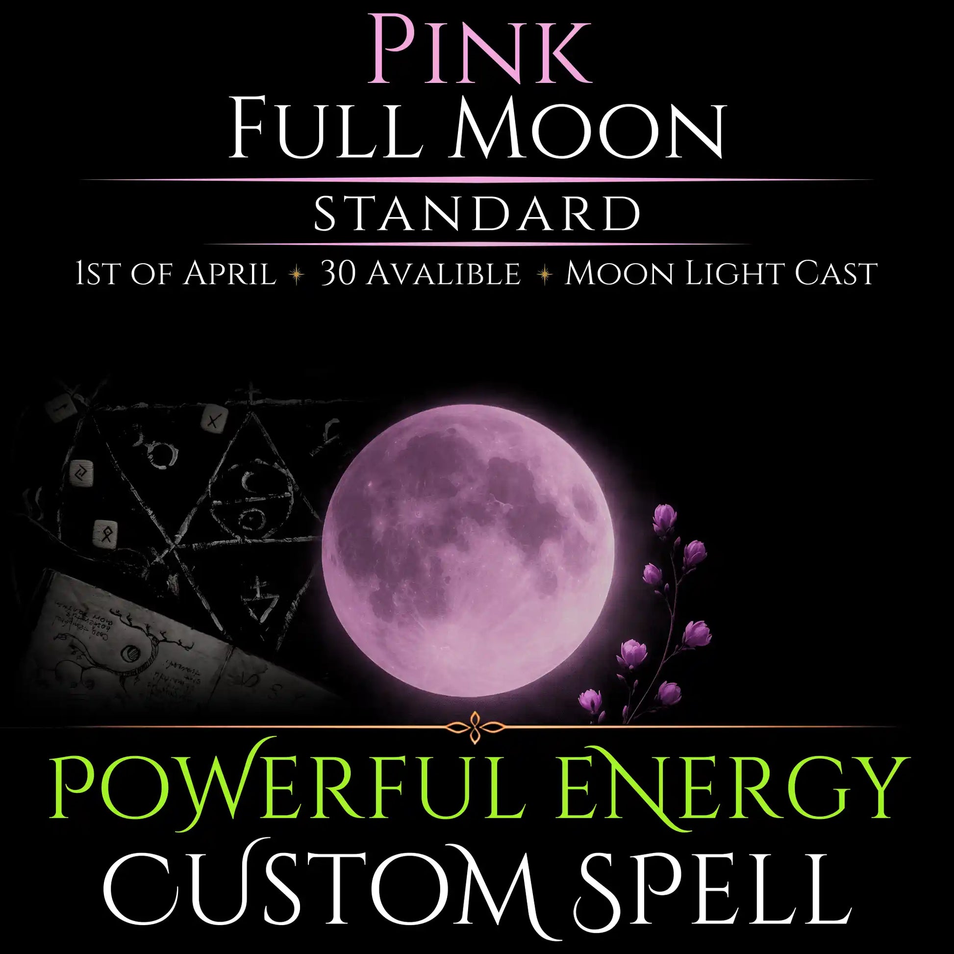 The Pink Full Moon in Libra on the 1st of April. Venus strong in Taurus, Jupiter generous in Cancer, Pluto transforming from Aquarius. Complex situations need a moon with range, and this one has it. I'll design your casting around the full picture, not just one angle. 30 castings this moon.